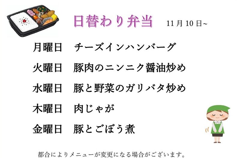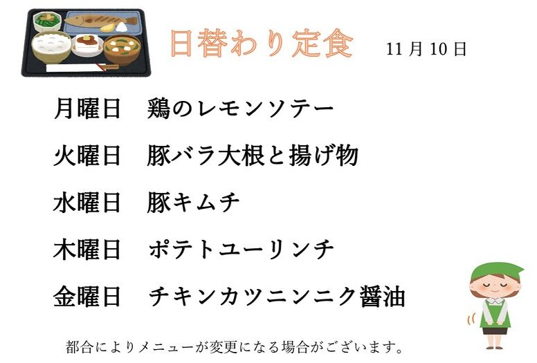 今週の「日替わり定食」と「日替わり弁当」のメニューをご紹介いたします。