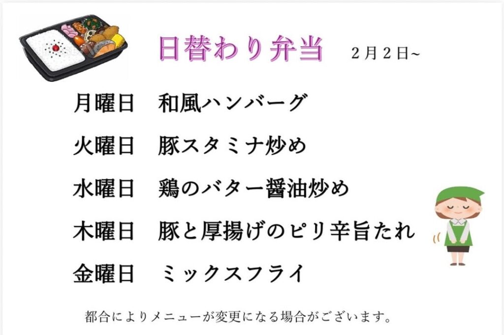今週の「日替わり弁当」のメニューをご紹介いたします。