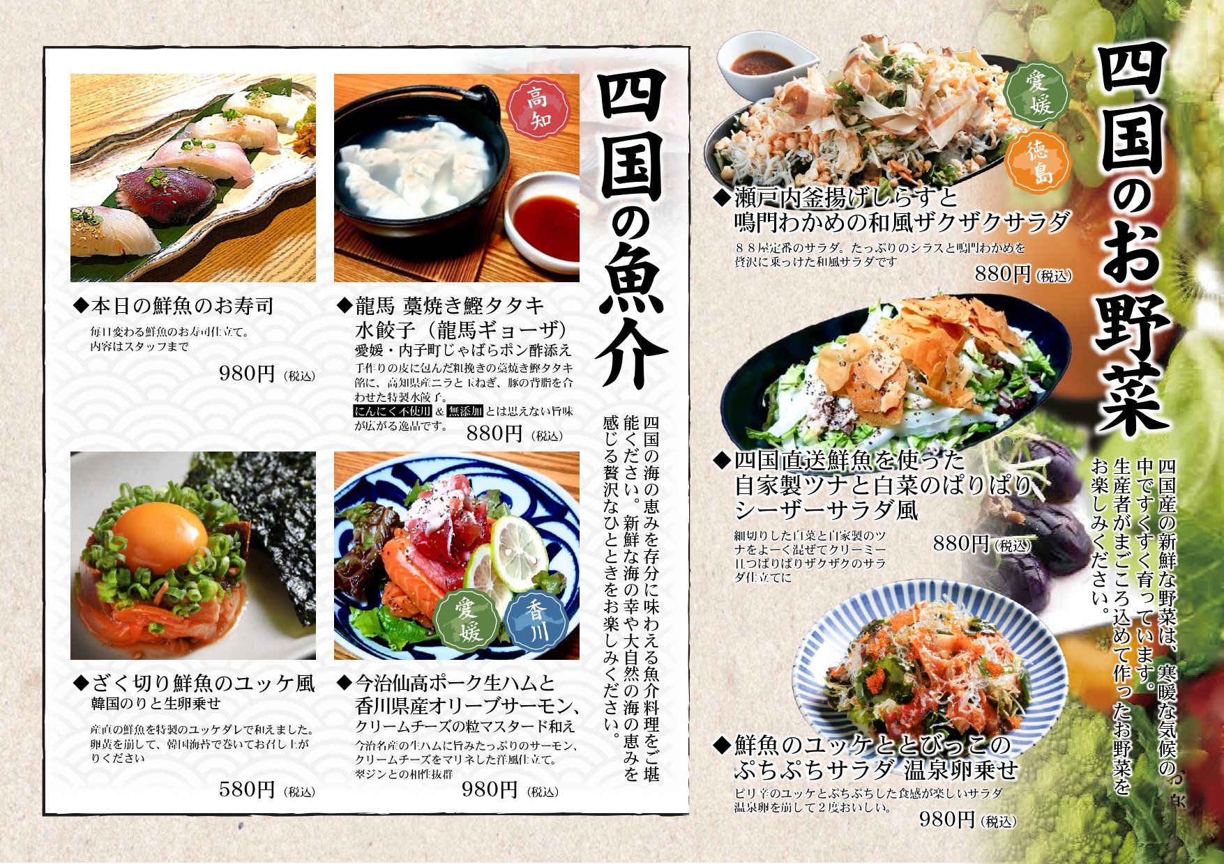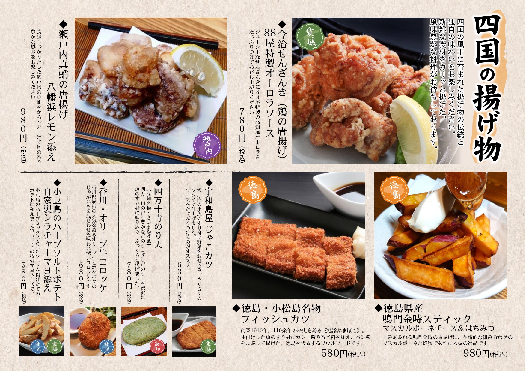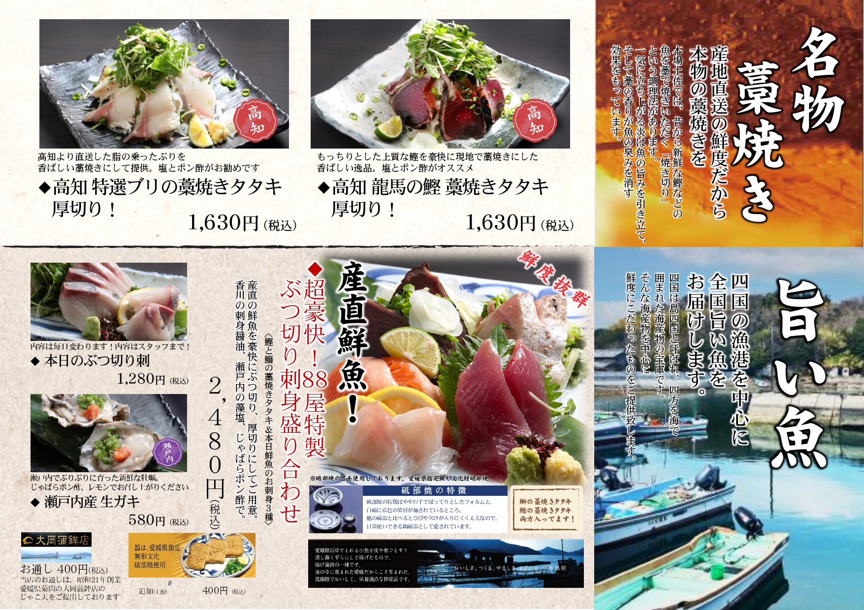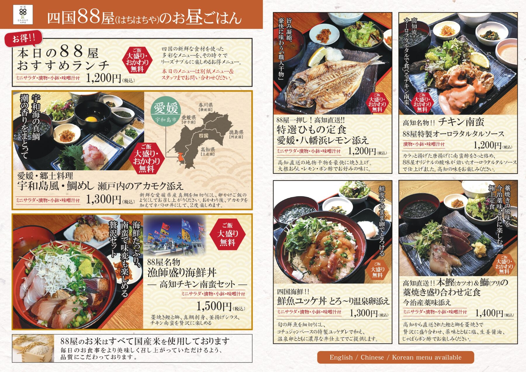 ♦四国88屋 大手町店のグランドメニュー・ランチメニューを公開いたしました。 四国四県(愛媛・香川・徳島・高知)の