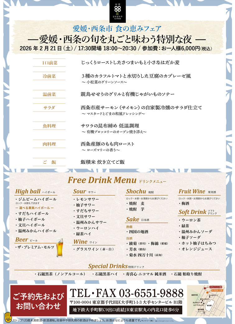 ドリンクは四国の地酒・焼酎・果実酒を含む