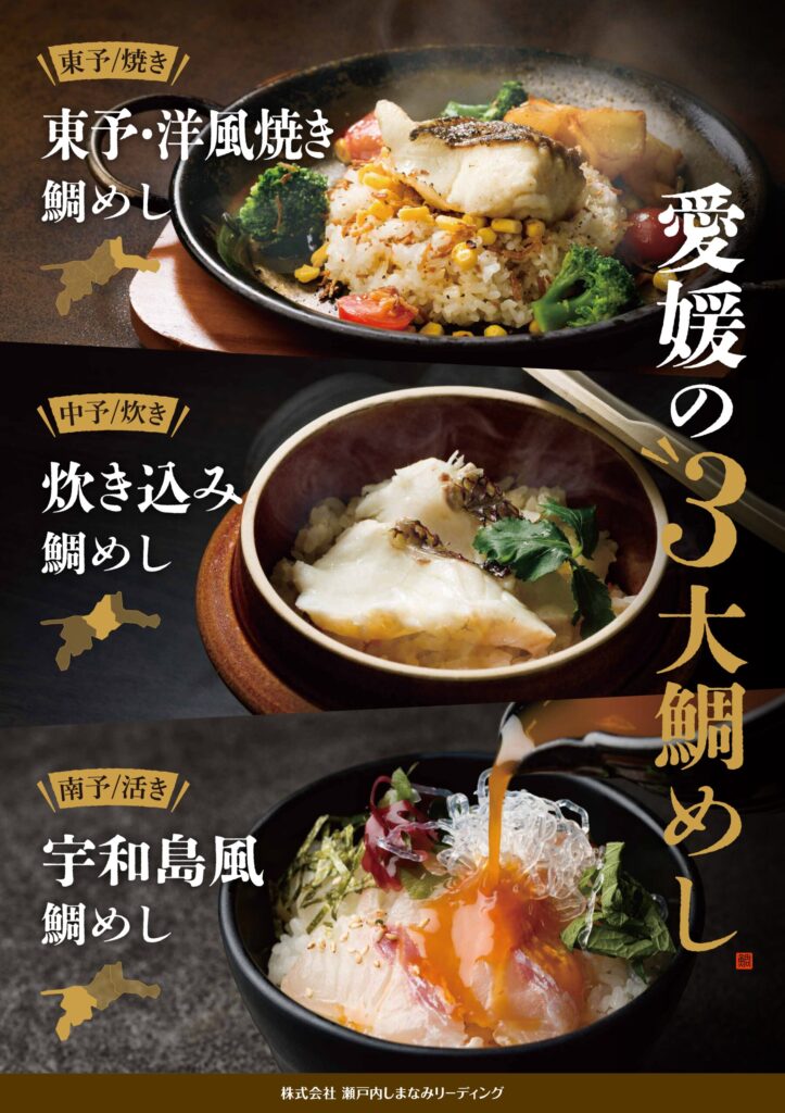 愛媛県には、地域ごとに異なる特徴を持つ「鯛めし」があります。