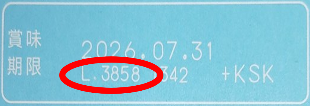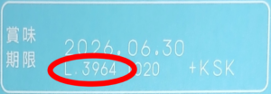※賞味期限の下部 L.3964とL.3858 が該当します。